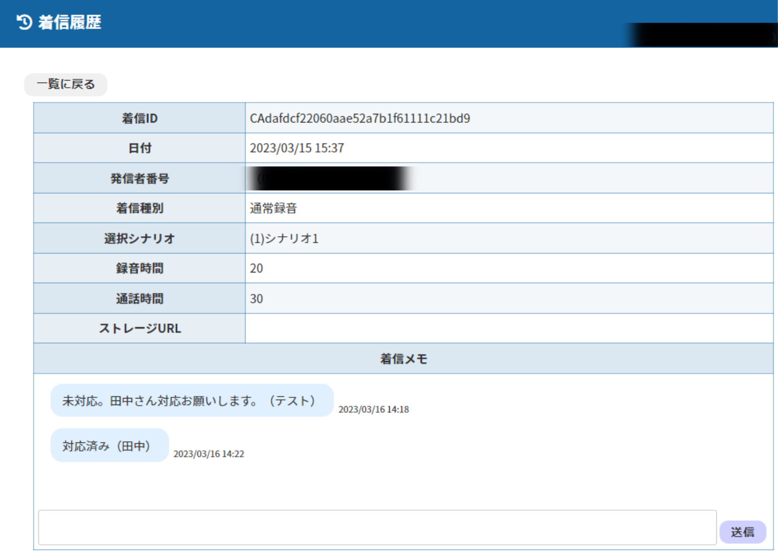 ・着信詳細では、対応未対応などメモの記入ができるメモ機能を実装。対応忘れを防止できます。