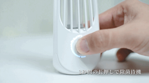 ボタンを押してから30秒後にランプが自動点灯し除菌が開始されます。一度の除菌時間は30分、自動停止するので安心、簡単!