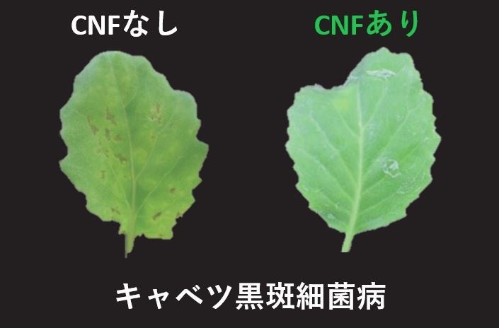 中越パルプと丸紅は、2018年より筑波大学を含めた3社で共同研究を開始し、葉面感染を原因とする病害に対して、CNFが有益な効果を示すメカニズムを解明しました。