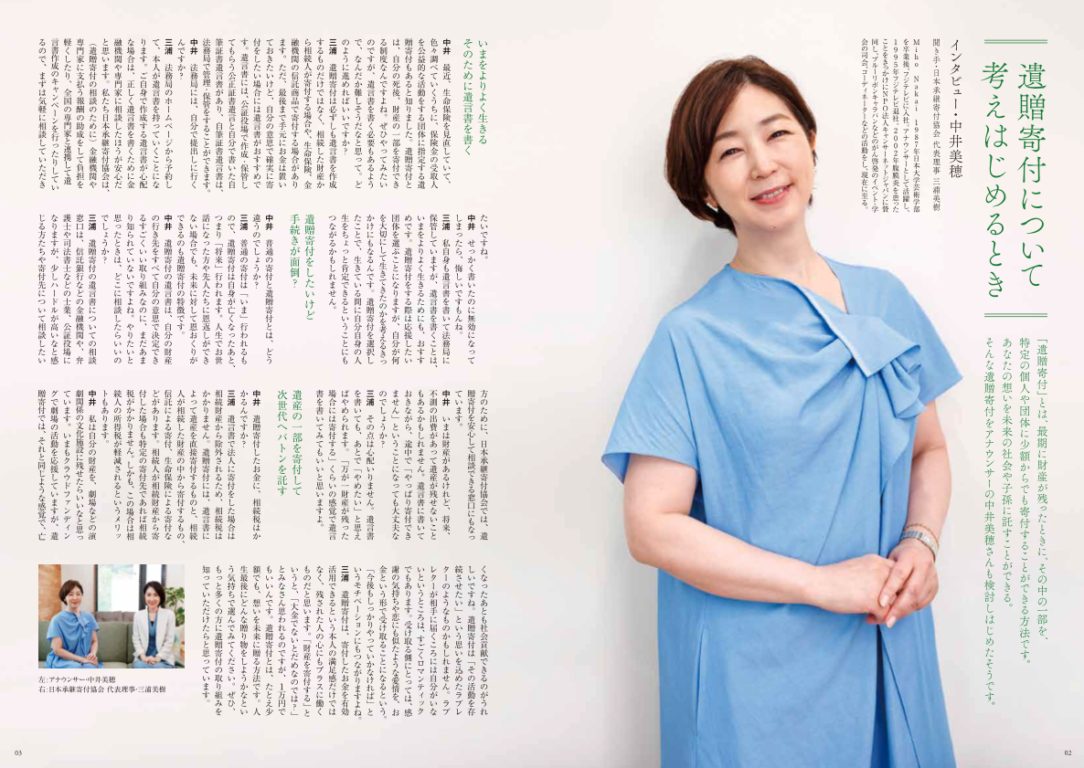 (2) 遺贈寄付をはじめて知る方に向け、アナウンサー・中井美穂さんへのインタビュー記事や遺贈寄付の特徴や実施方法など「解説」を掲載