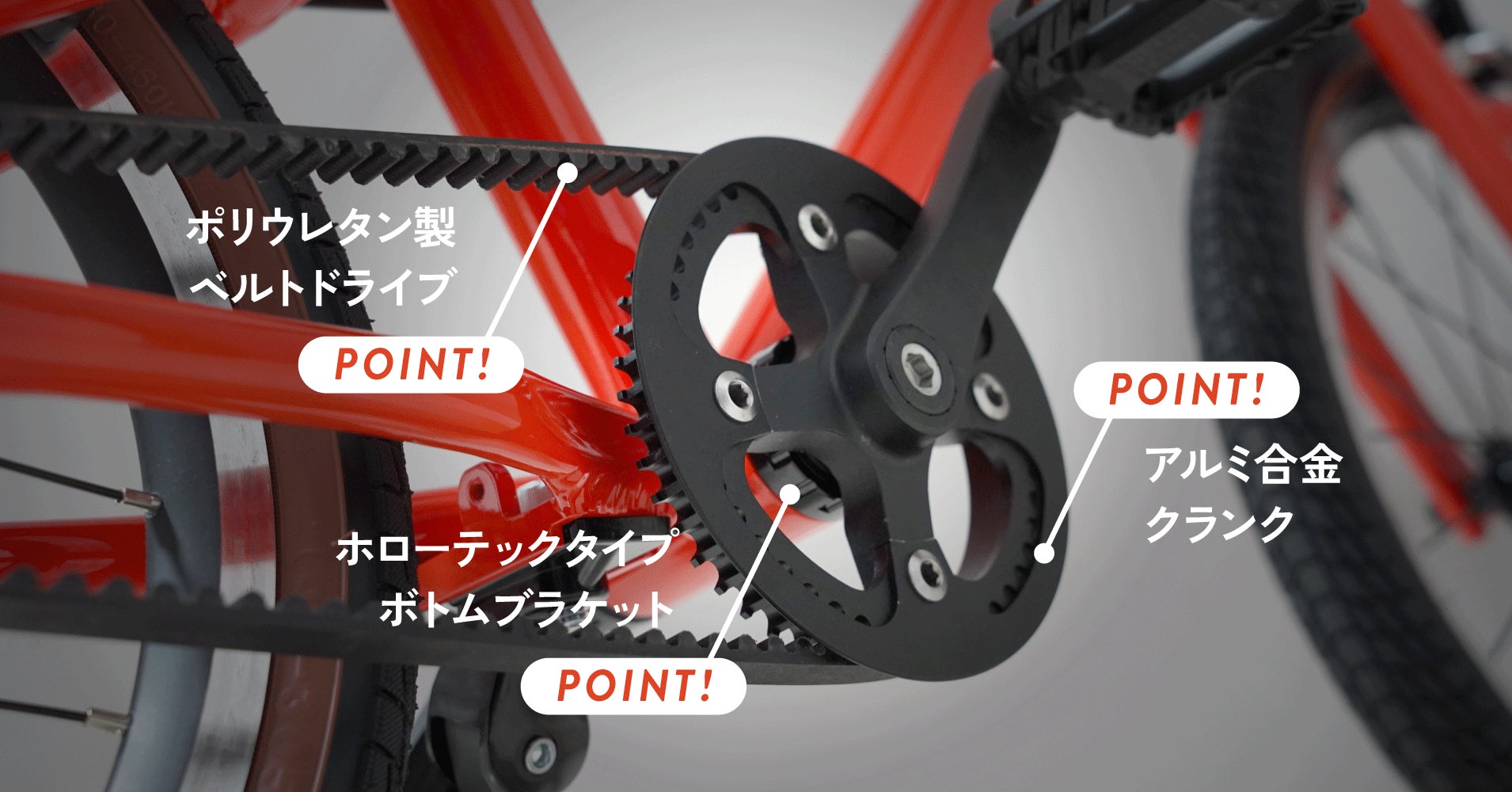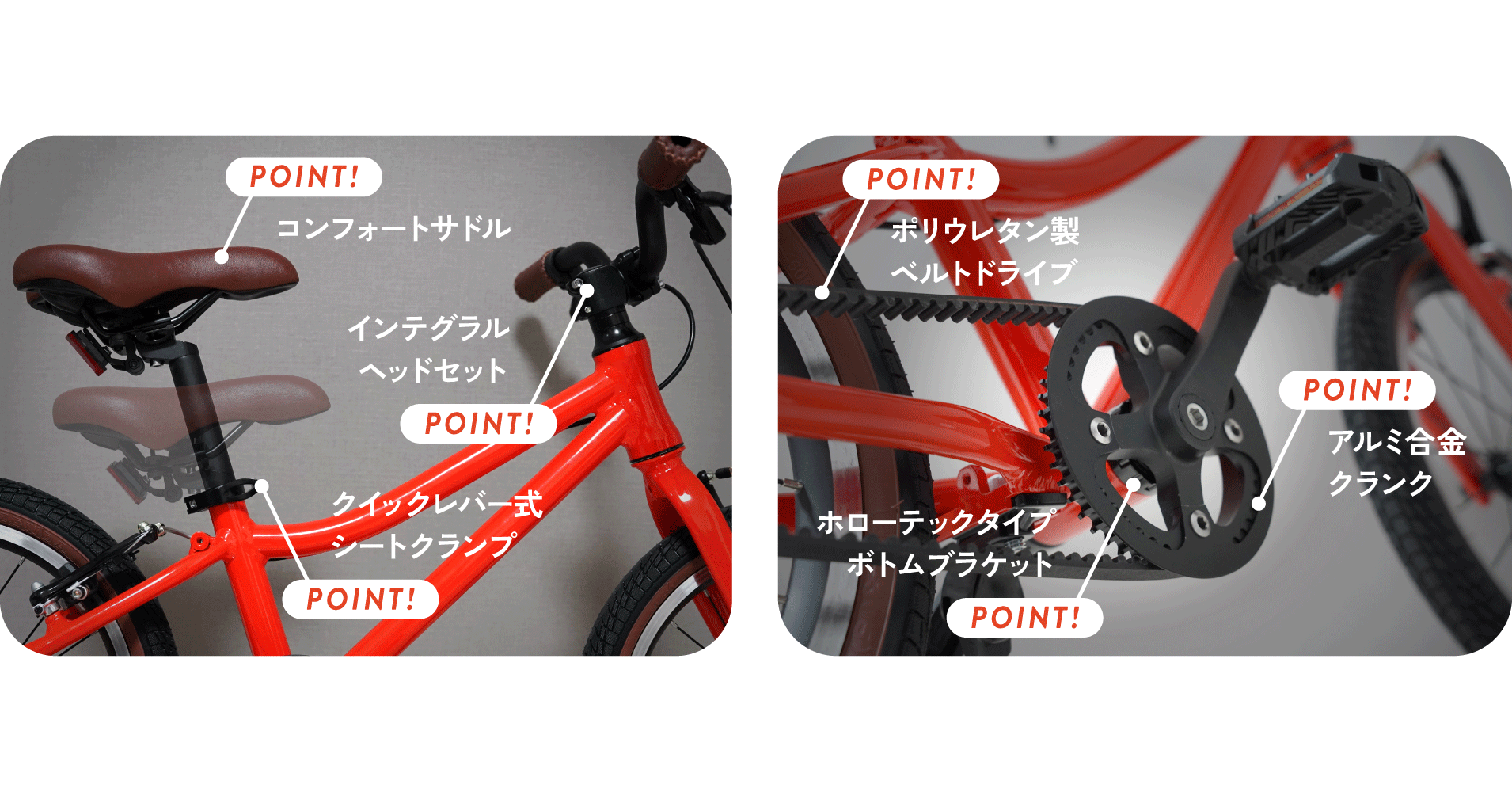 ハイグレードのスポーツバイクでしか使われないパーツを搭載し、小さなお子様でもエネルギー効率を高めた、軽いペダリングを体感できます。