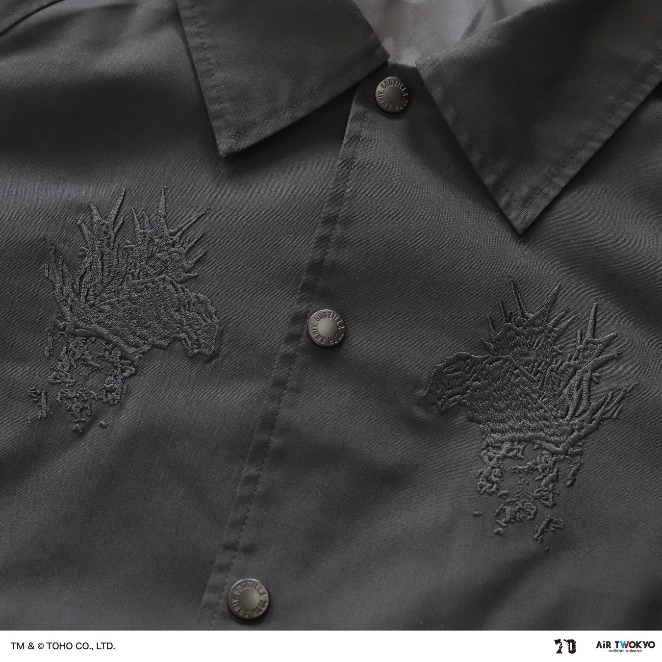 両胸にあるゴジラの刺繍加工は緻密なディティールも表現されており、シックかつ高級感溢れるデザインに仕上げている。