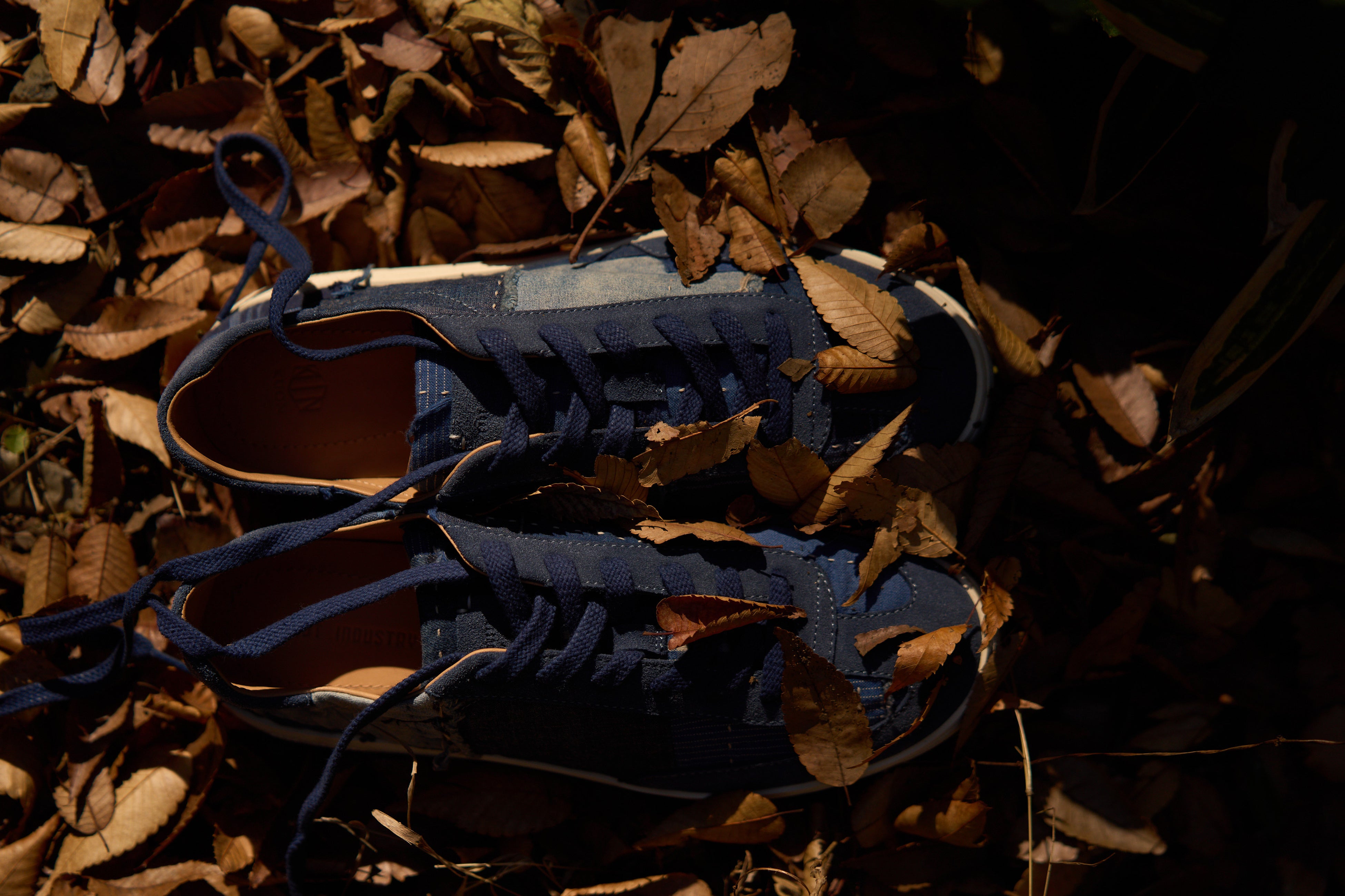 FOOT INDUSTRYの定番として人気を博す一枚革仕立てのジャーマントレーナー。今コラボではKUONの誇る現 代版襤褸ファブリックでアレンジ。パッチワーク生地の配置・表情は一点一点異なり、作成されたシューズはすべて が一点もの。クラフト感溢れる見た目とは裏腹に、長時間着用しても疲れない履き心地の良さは折り紙付き。