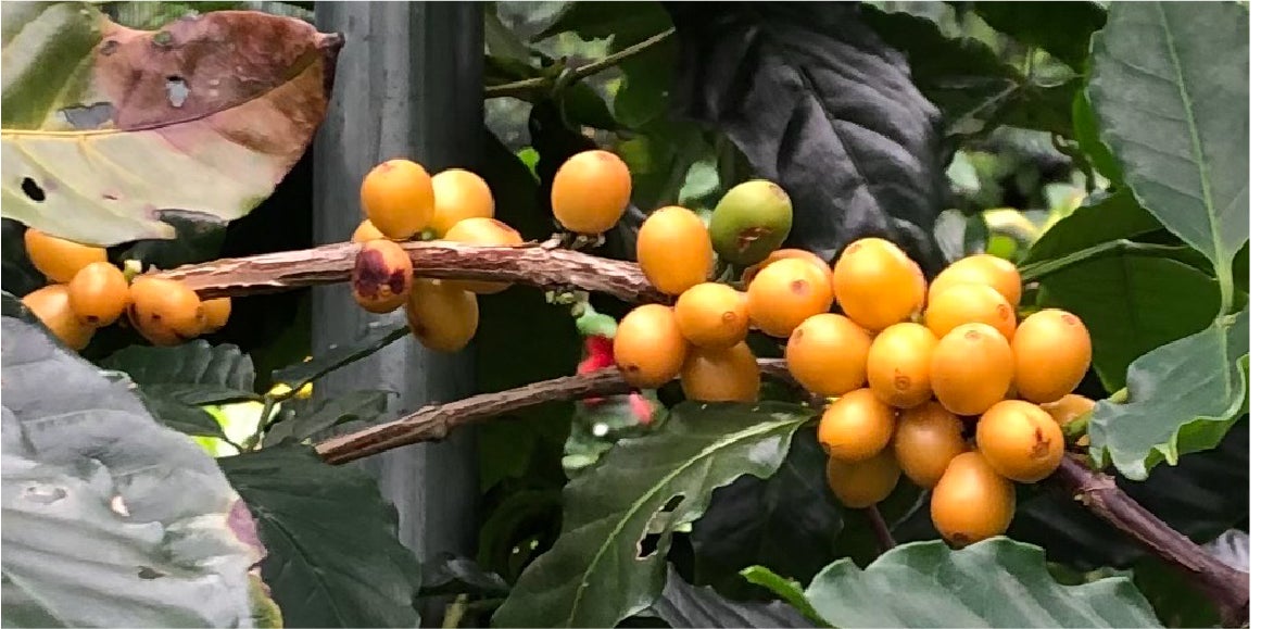 沖縄の農園で育てられたコーヒーの苗は沖縄の土壌、太陽、水をたっぷり浴びて力強く育っています。