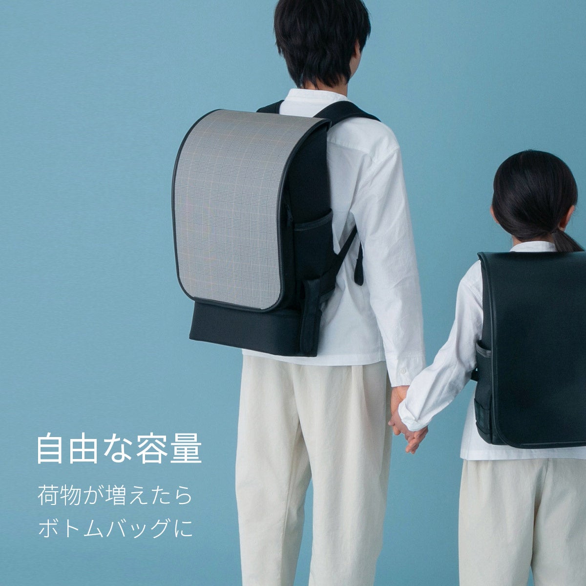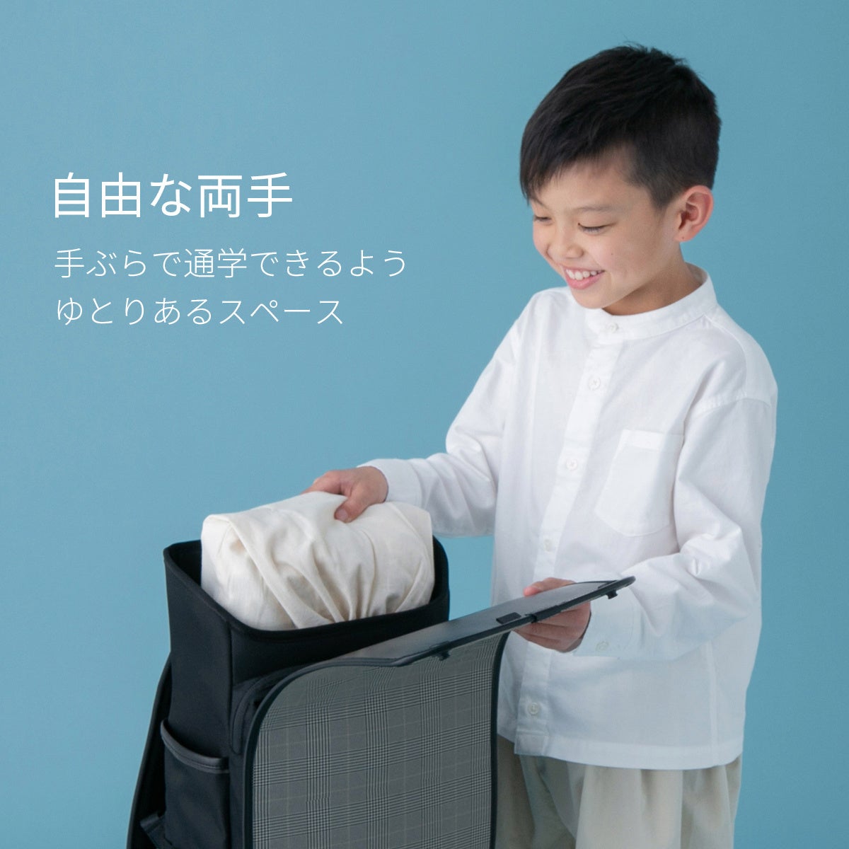 - 「自由な両手」手ぶらで通学できる、ゆとりあるスペース自由な容量