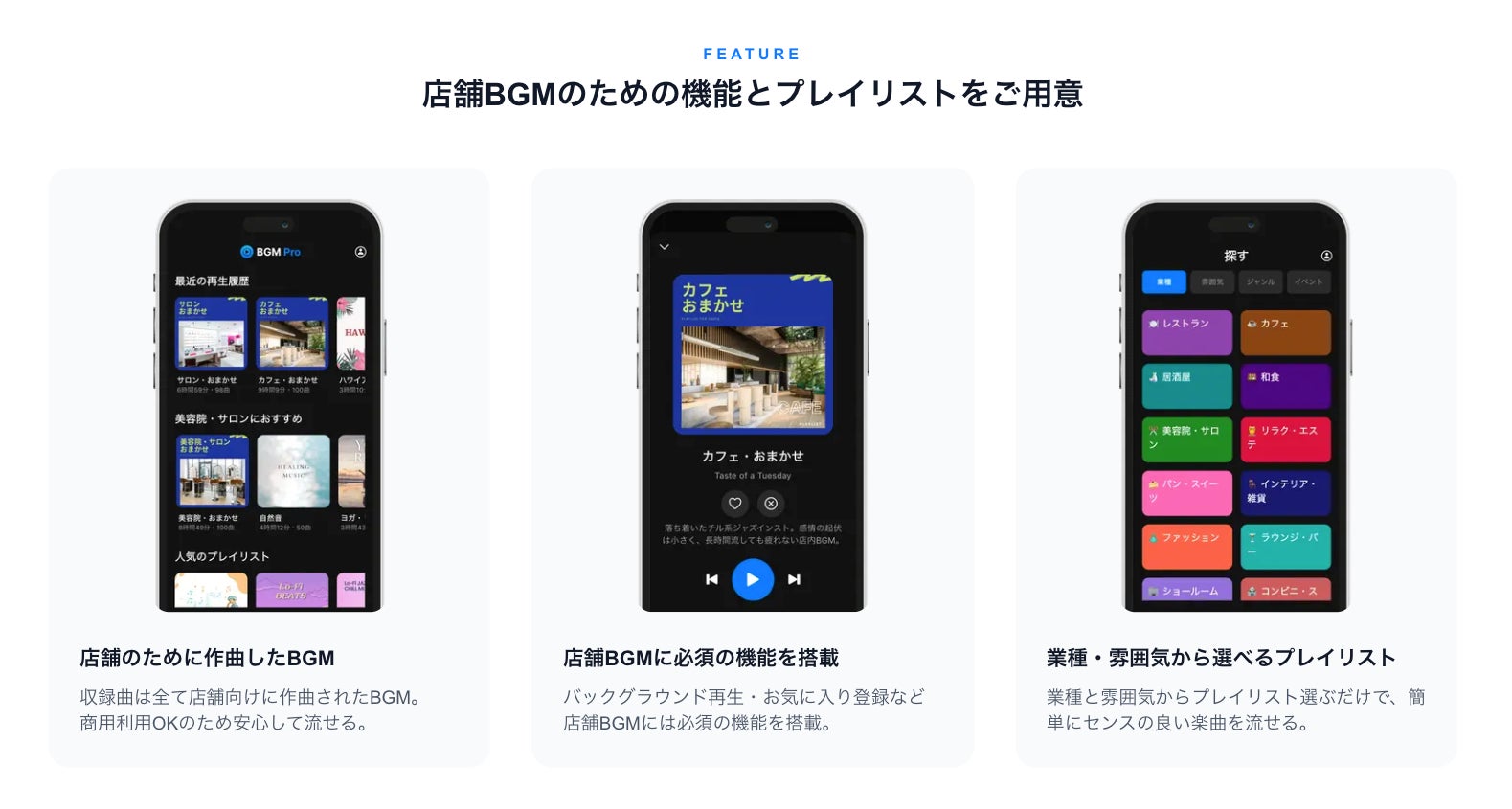 ■ BGM Proの特長 - 店舗でBGMを流すことに特化