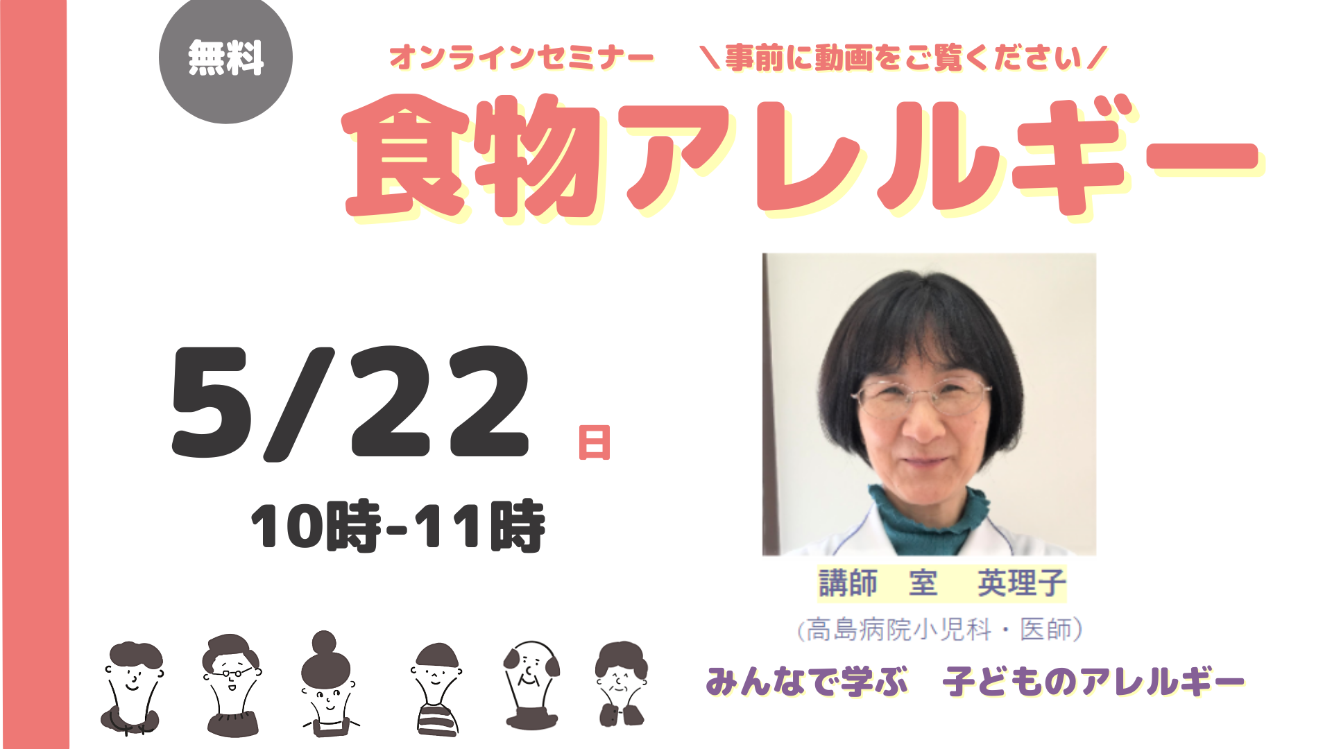 - 2022年5月22日(日)10時〜11時 【食物アレルギー】