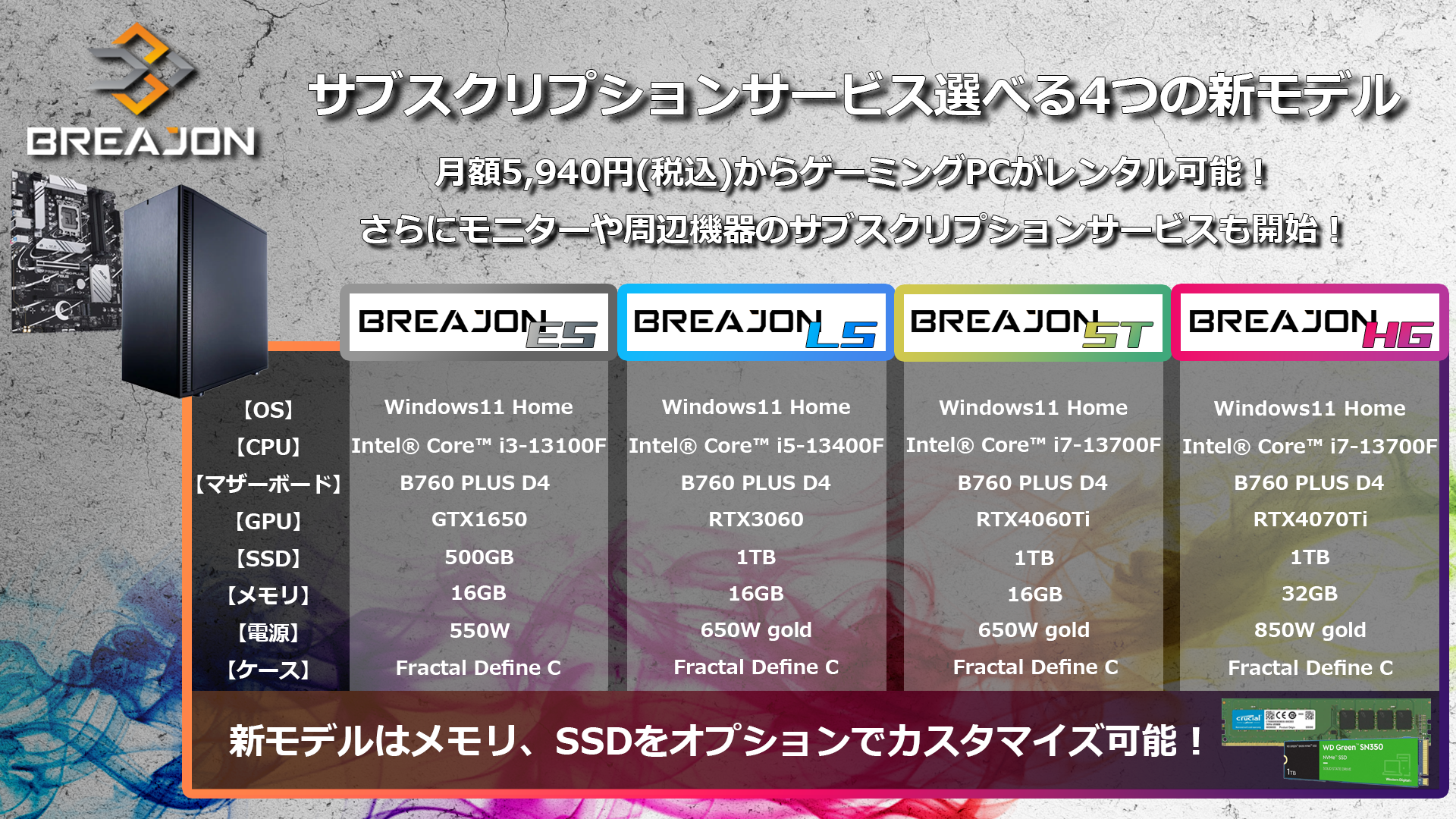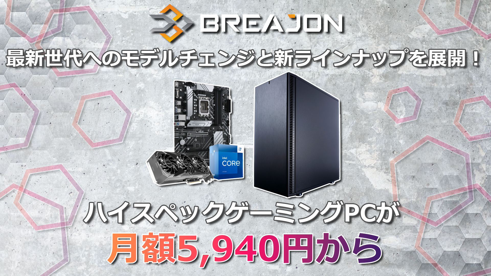 ゲーミングPCブランド「BREAJON」最新世代へのモデルチェンジと新ラインナップを展開!最新のハイスペックゲーミングPCが5,940円から、お申込開始!