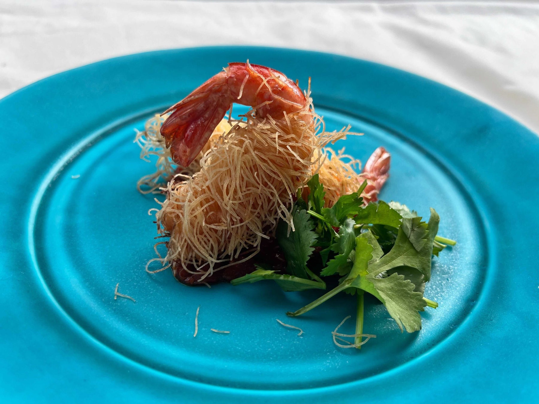 「カダイフエビチリ(露草色のお皿の写真)」や「オイルサーディンのハーブパン粉焼き(千種色のお皿の写真)」などハードサイダーとのペアリングが楽しめる料理を提供する。見た目は勿論、味にもこだわり抜いた絶品を、直に足を運んで楽しんでほしい。
