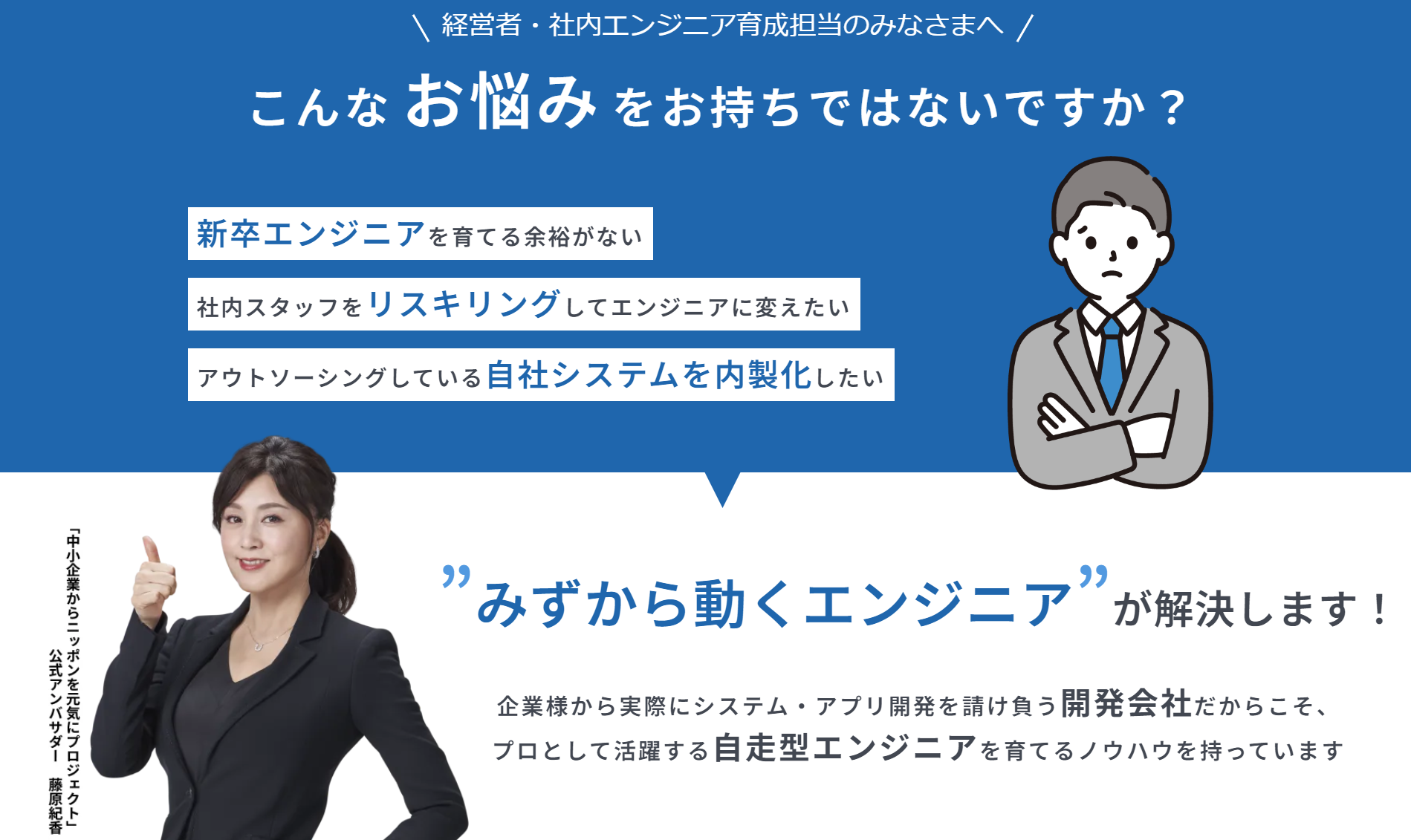企業様から実際にシステム・アプリ開発を請け負う開発会社だからこそ、プロとして活躍する自走型エンジニアを育てるノウハウを持っています。