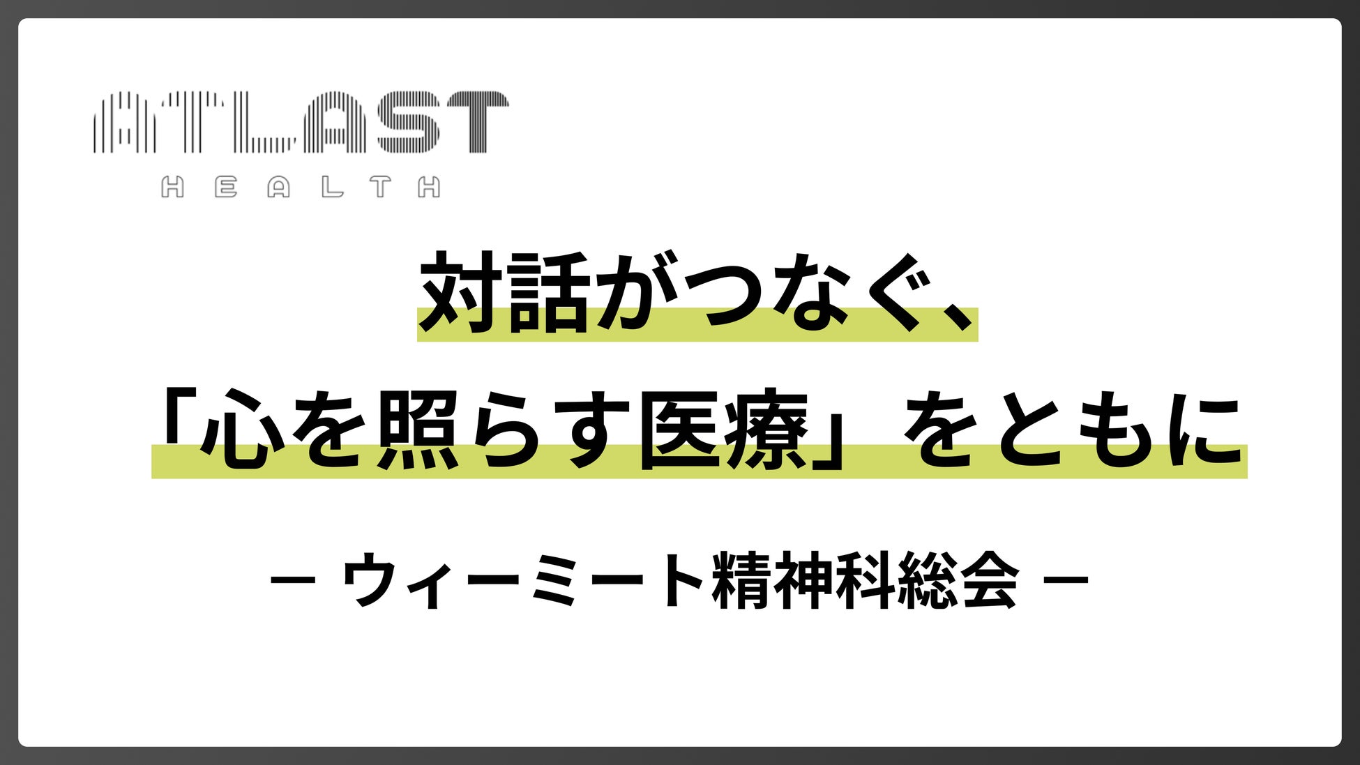 アトラスト・ヘルス株式会社(所在地:東京都中央区、代表取締役:バローチニール、以下「当社」)は、オンライン×対面の総合精神医療プラットフォーム『WeMeet』の開発・運営を行う企業として、プラットフォームに登録している提携医療機関の精神科医との意見交換会『対話がつなぐ「心を照らす医療」をともにーウィーミート精神科総会―』を実施いたしました。