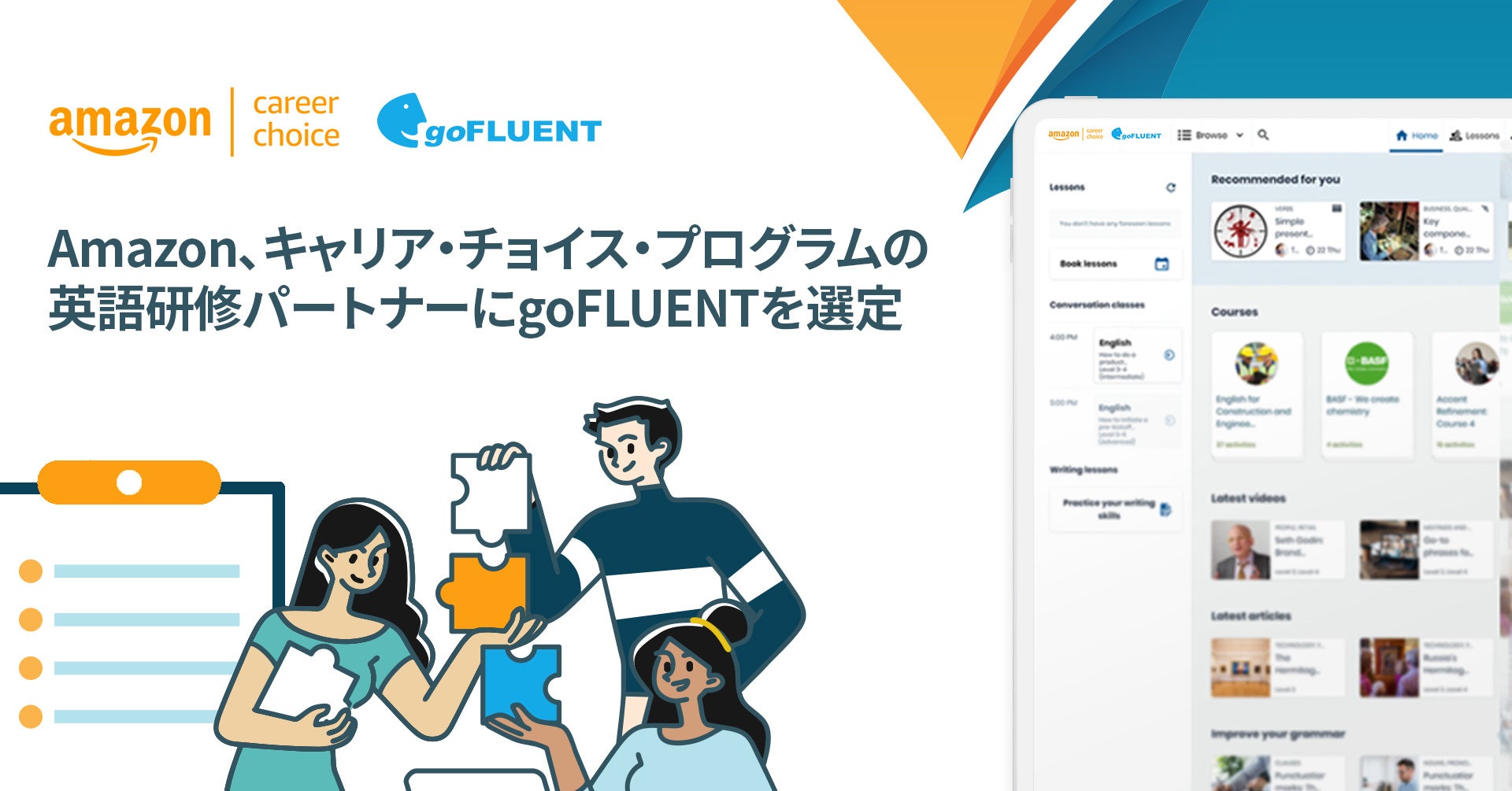Quakertown, PA and Tokyo, Japan.--(BUSINESS WIRE) --2022年3月3日-- この度、goFLUENTはAmazonのキャリア・チョイス・プログラムでのEnglish Language Learning(ELL)に選出されたことを発表いたします。 goFLUENTはAmazonで時給制で働く従業員向けに、1on1レッスン、グループレッスン、AIを活用したオンデマンド型学習プラットフォームへのアクセス、専任の学習アドバイザーから成るパーソナライズされたブレンド型学習コースへのアクセスを提供します。goFLUENTのワンストップ型のプログラムは、測定可能な英語のアップスキルと業界標準のCEFRレベル認証を実現するように設計されています。