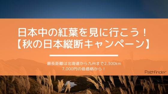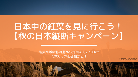 パスファインダーは、秋の行楽シーズンに合わせ、「もっと自由に旅を楽しんで欲しい」という想いから、新千歳空港から福岡空港までを片道乗り捨てレンタカーで繋ぐことにより、帰り道を気にせず車で日本縦断ができる「日本中の紅葉を見に行こう!秋の日本縦断キャンペーン」を実施します。