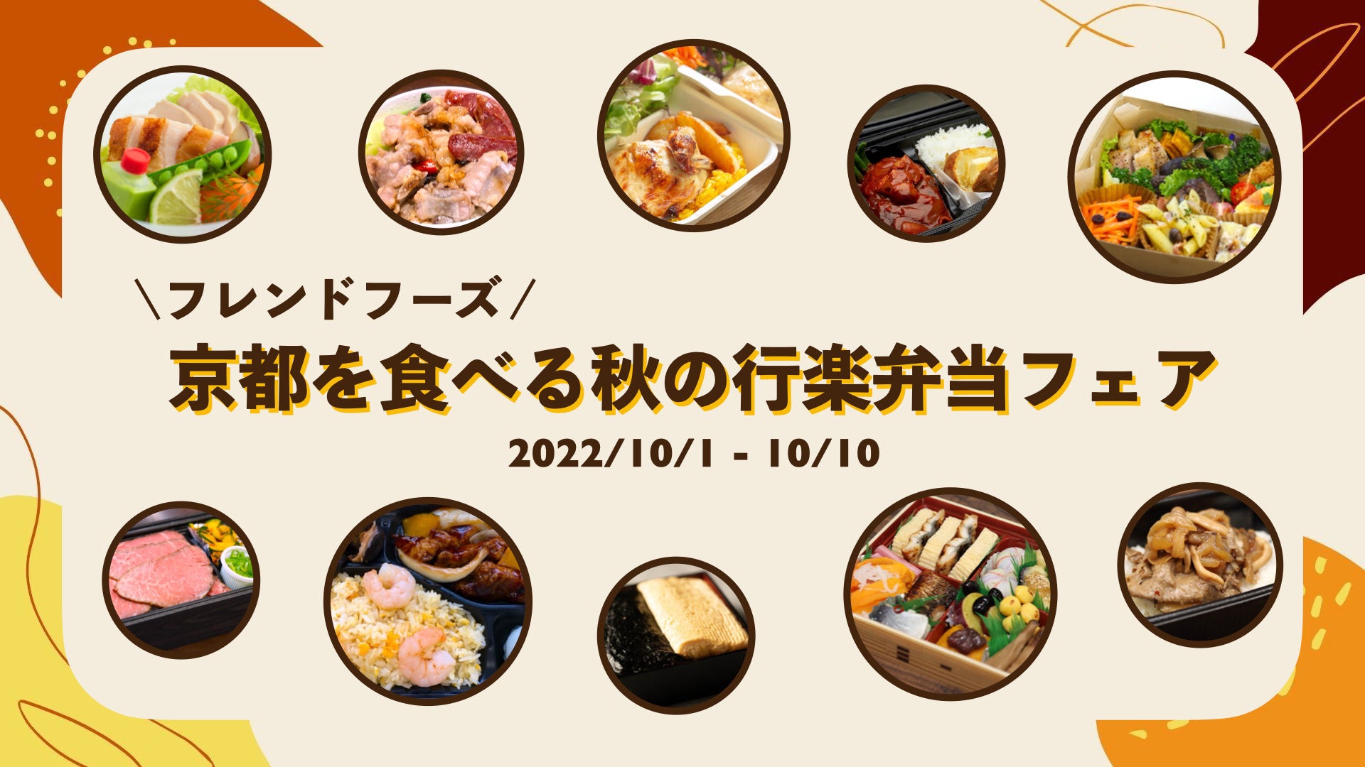かねてより"ほんまもん"にこだわり、京都の飲食店や惣菜店とお付き合いを重ねてきたフレンドフーズ。今回はそんな信頼のおける専門店さんに協力を依頼し、「アロウネノ」「キッチン16」「キャピタル東洋亭」「BAOBAO」「星街」「ULUCUS」の6店より、フェアにお弁当を提供いただけることとなりました。いずれのお弁当も当店初登場かつ、ほとんどが他店では販売されていない品です。さらにフェアで初お披露目となるフレンドフーズオリジナル弁当も多数揃え、皆さんの秋の行楽イベントを美味しく彩ります。