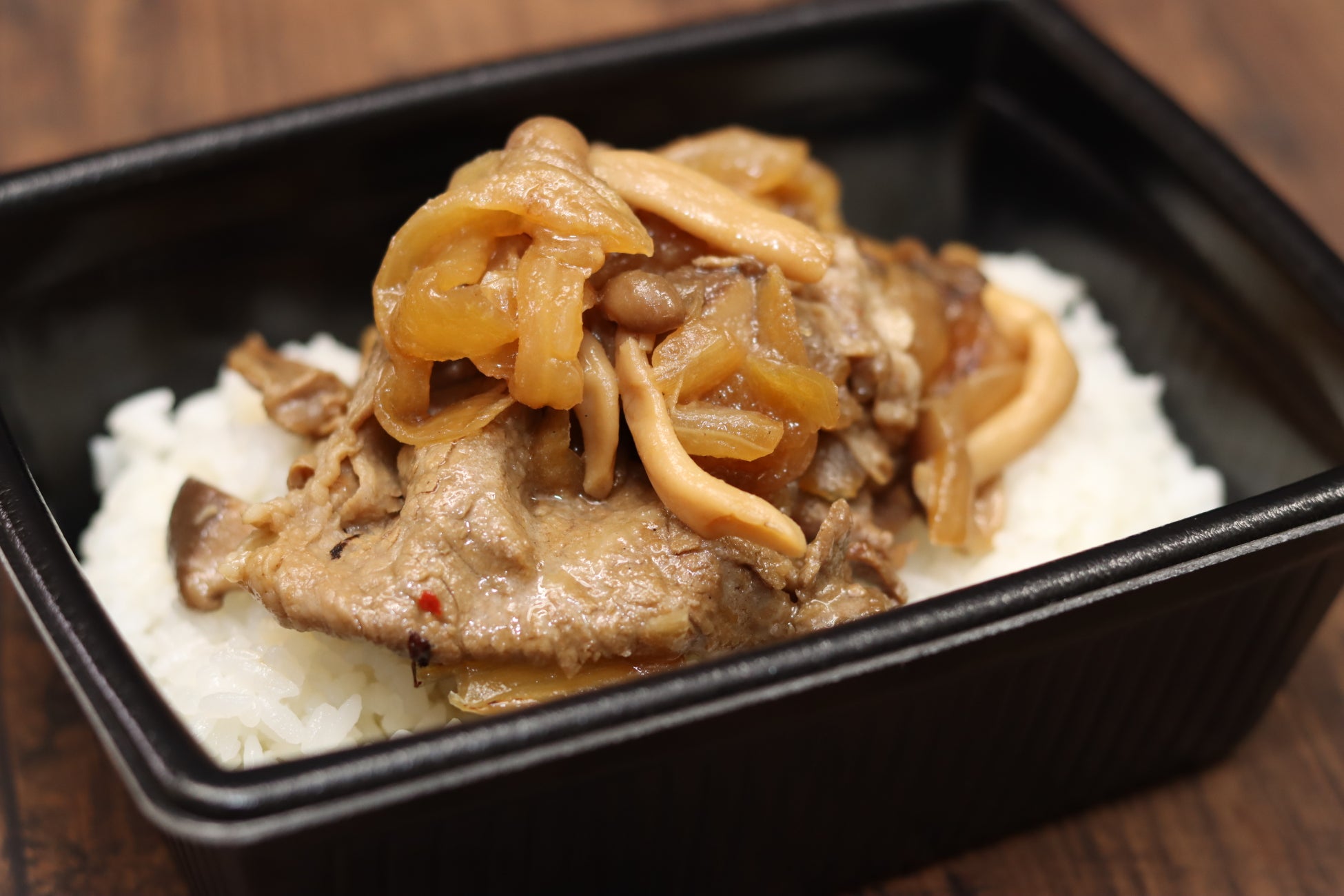 フレンドフーズで販売しているA4、A5ランクの黒毛和牛ロース・モモ・バラを使用。美味しさを存分に味わっていただけるよう、一般的な牛丼に比べ、かなり大きめにお肉をカットしています。秋の味覚のきのことともに、贅沢な牛丼に仕上げました。