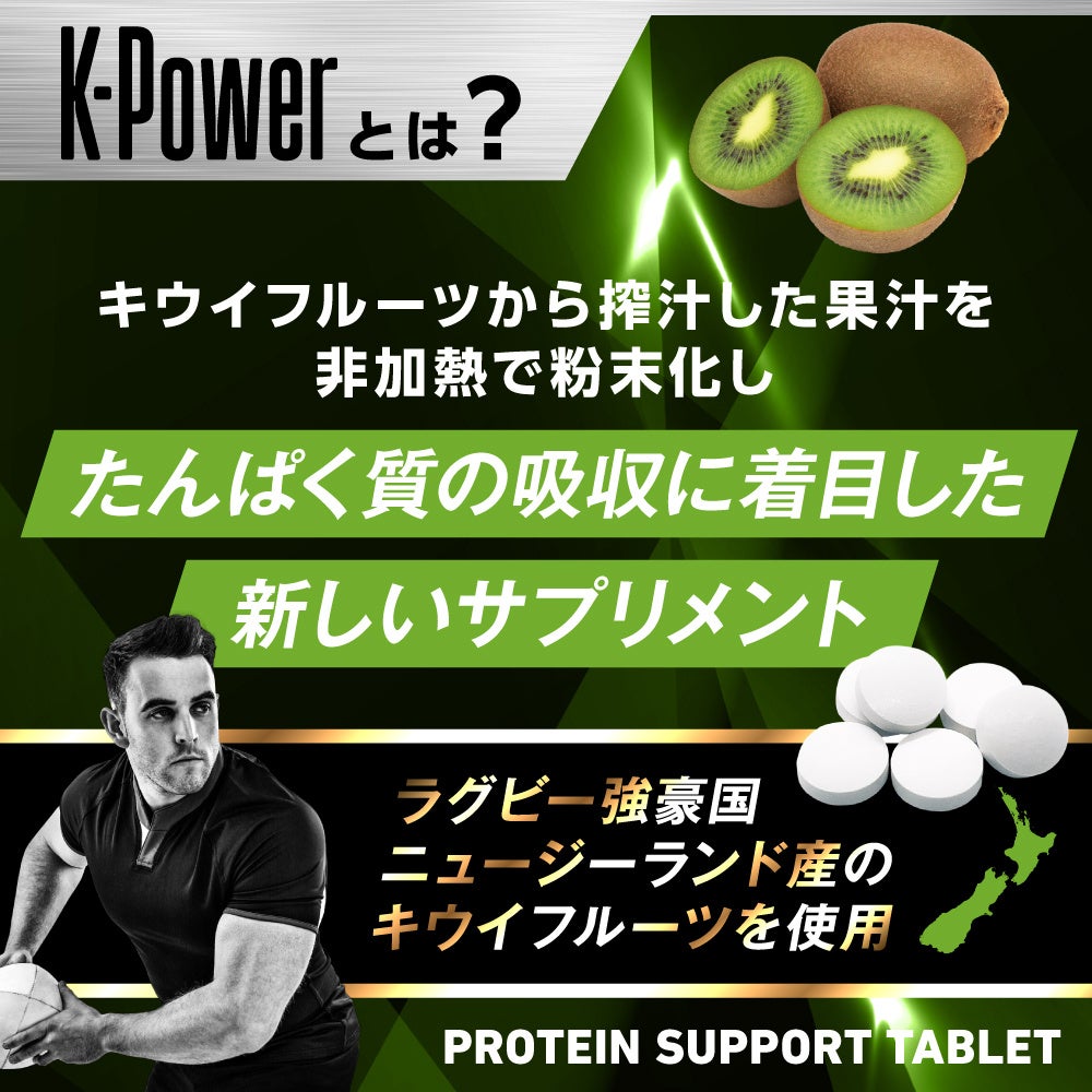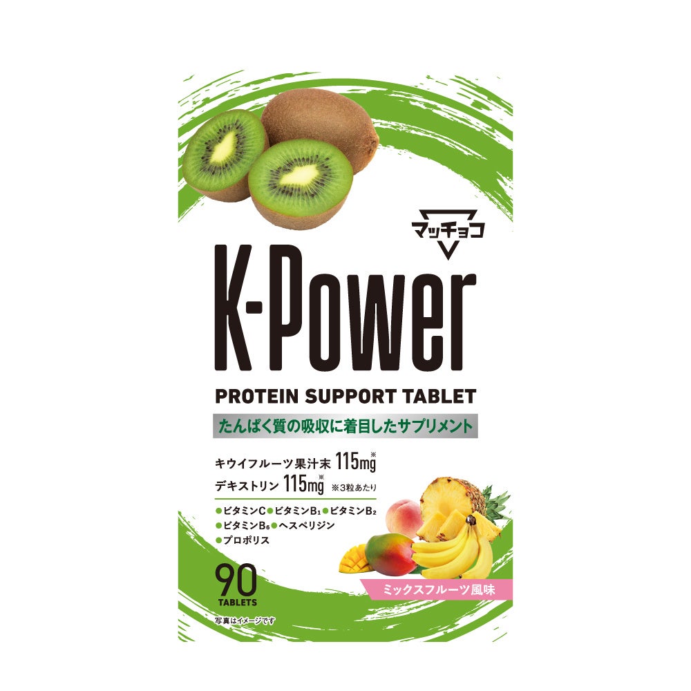 ラグビー強豪国ニュージーランドのキウイフルーツを非加熱で粉末にし、たんぱく質の吸収に着目した日本初のプロテインサポートタブレット:マッチョコ『K-Power』を29日(肉の日)に発売!!