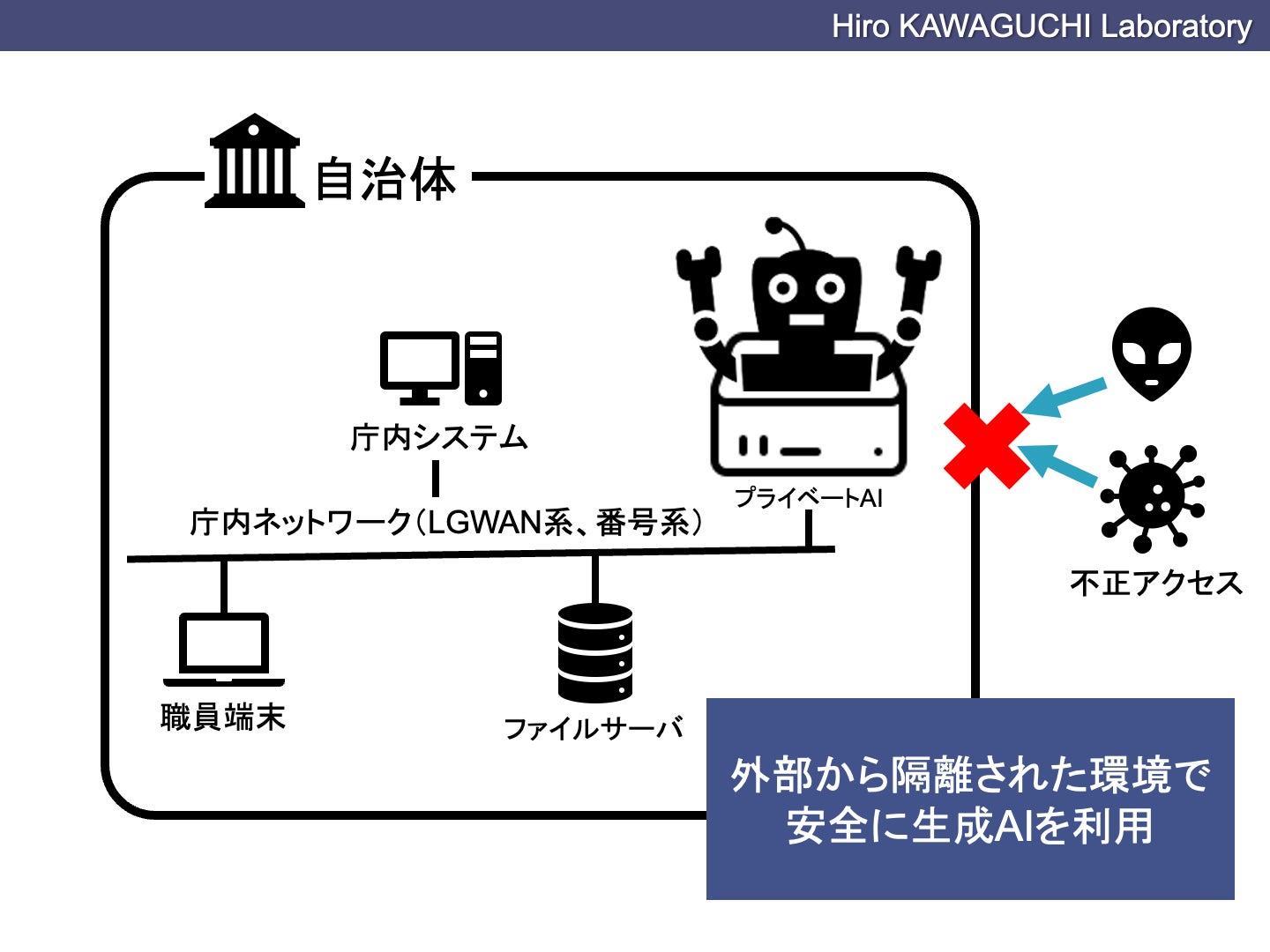 プライベートAIは住民情報システム等の番号系ネットワーク上でも動作させることができます。
