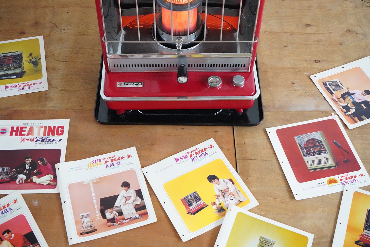 1980年代に人気を博した当時のレインボーストーブなど過去の製品を展示。
