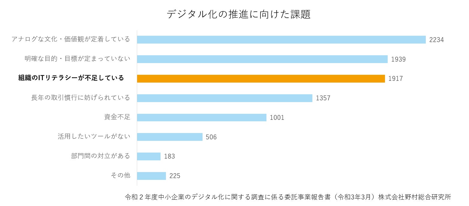 デジタル化の推進に向けた課題の調査結果組織のITリテラシー不足が3位にランクイン