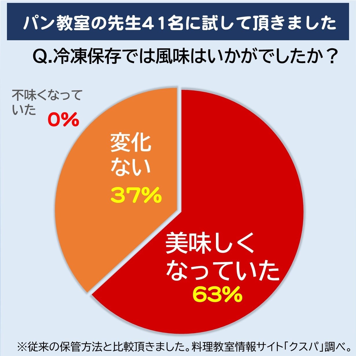 <結果>冷凍保存も試していただきました。41名中24名(63%)の先生が「美味しくなっていたと思う」を選択、冷凍でも高い評価頂けました。