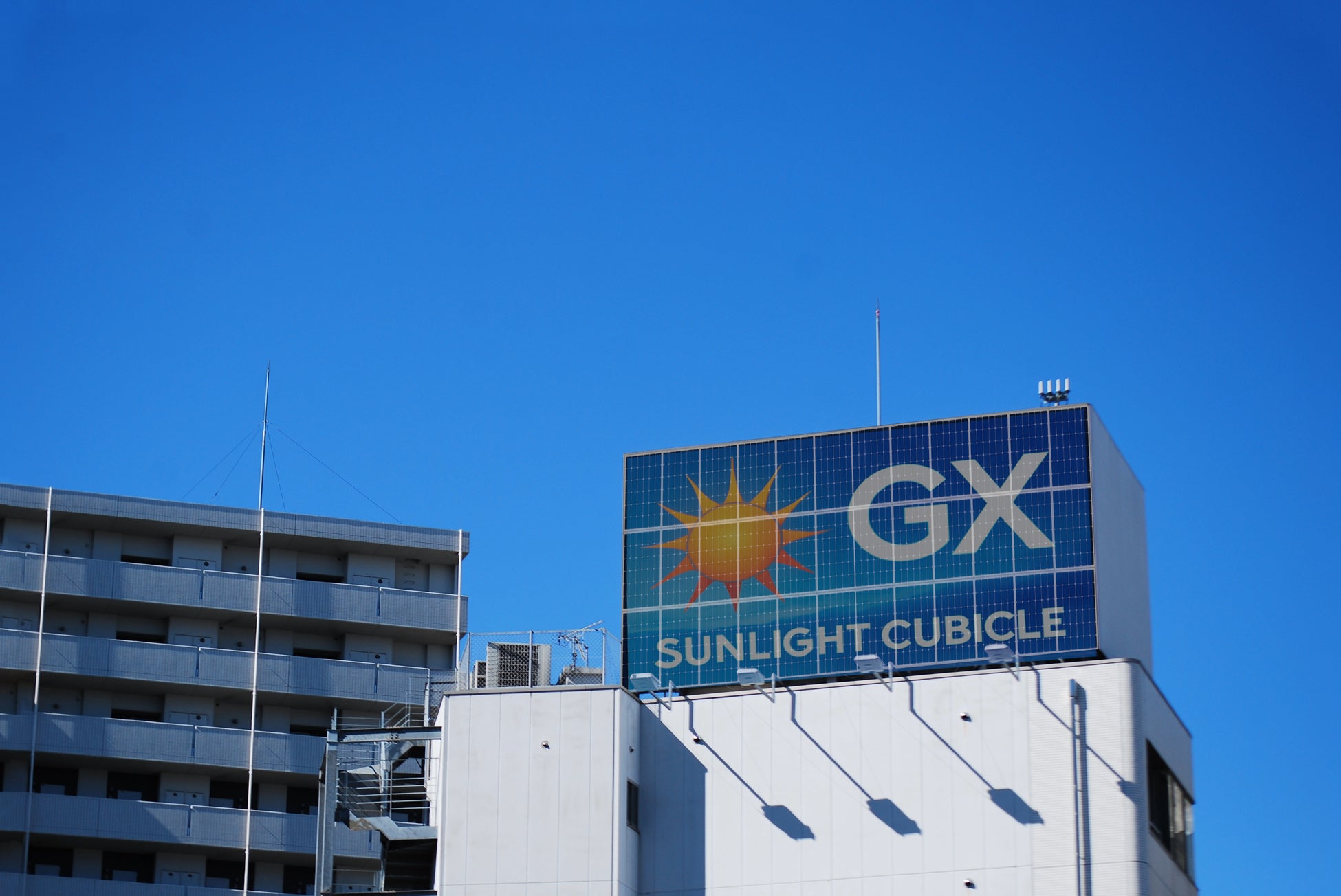 サンライトキュービクルは、太陽光パネルとLEDディスプレイが一体化した、GX時代にふさわしい次世代型デジタルサイネージです。