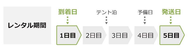 1泊2日のテント泊を想定し、お届け日からお客様からの発送日までを含めた5日間です。