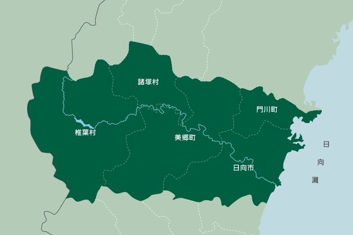 かつて、耳川の水運を利用して椎茸・木炭・木材の生産が盛んに行われていましたが、昭和30年代から積極的に拡大造林に取り組んできた結果、森林資源は年々充実。現在では、年間の素材生産量が30万㎥を超えて全国トップクラスを誇り、木材の加工流通拠点として整備された日向市東郷町の耳川木材加工団地は、国産材供給基地のモデルとして全国からも注目されています。