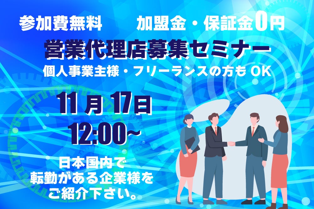 紹介代理店募集のオンラインセミナーを開催します!登録料・加盟金・保証金不要!【株式会社ビズリンク:転勤手配サポートサービスの紹介代理店募集セミナー】