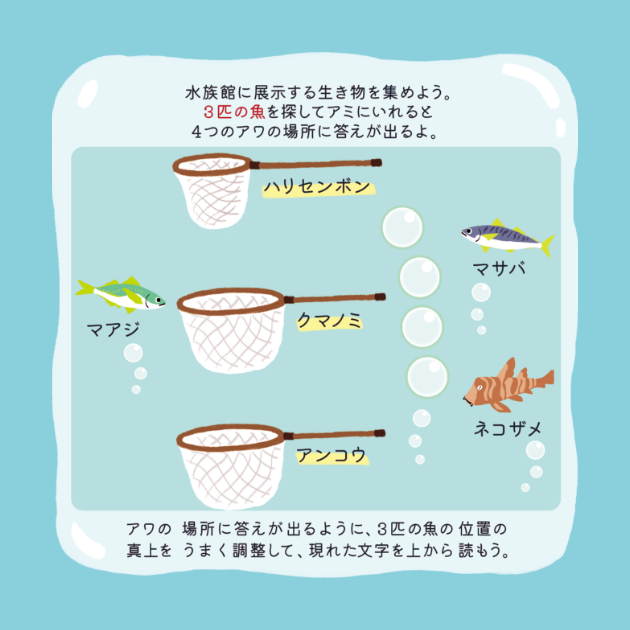 マリンワールドをはじめとした全国の水族館ファンにも、マリンワールドを知らない謎解きファンにも存分に楽しんでいただける謎解き作品です。