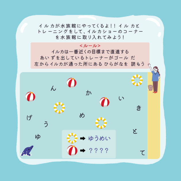開館直前に短期間で訓練したイルカたちのトレーニングや、展示生物の収集など、実際の水族館のお仕事とともに、マリンワールドの歴史を追体験できる貴重な謎解き作品に仕上がっています。