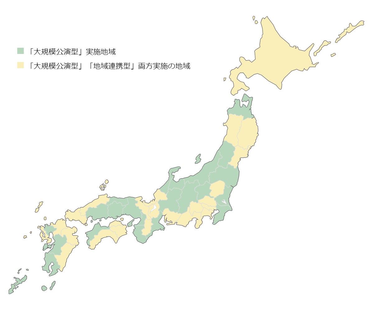 演劇・音楽・バレエ・オペラなどの芸術団体が全国公演を行う「大規模公演型」と、芸団協が地域の劇場・文化団体・事業者と連携して行う「地域連携型」の2つの区分からなります。芸術団体が集中する大都市圏から日本の各地へ芸術を届ける“縦糸”と、地域内で連携して多彩な文化芸術を創造する“横糸”を組み合わせることで、全国の人々が様々な形で文化芸術に触れる機会を立体的に大規模に創出する、文化庁の画期的なプログラムです。3年目を迎える本事業は、コロナ禍の緊急支援の意義を超えて、全国各地の文化環境の向上や、人々のウェルビーイングへの効果など、多くの好影響をもたらしています。