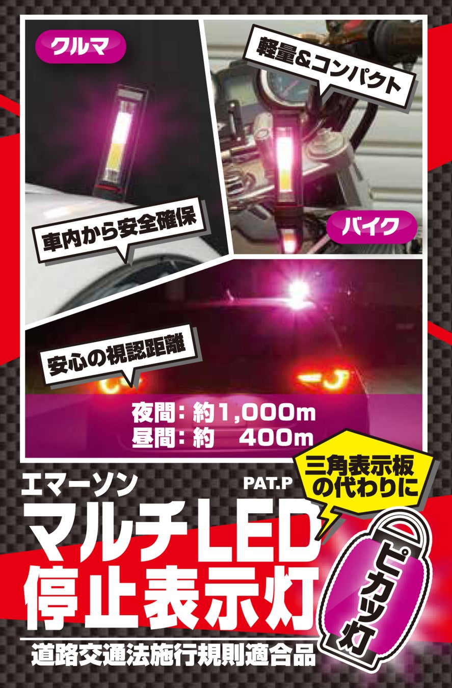 もちろん停止表示器材として、道路交通法施行規則に適合しています。