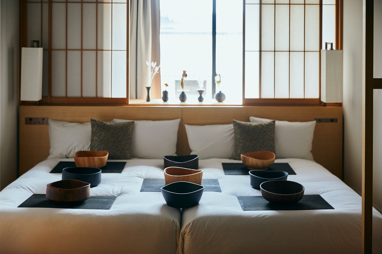 客室は、京都の伝統的な住宅形式の町家をモダンに表現した、細長い"マチヤスタイル"のデザインが特徴です。