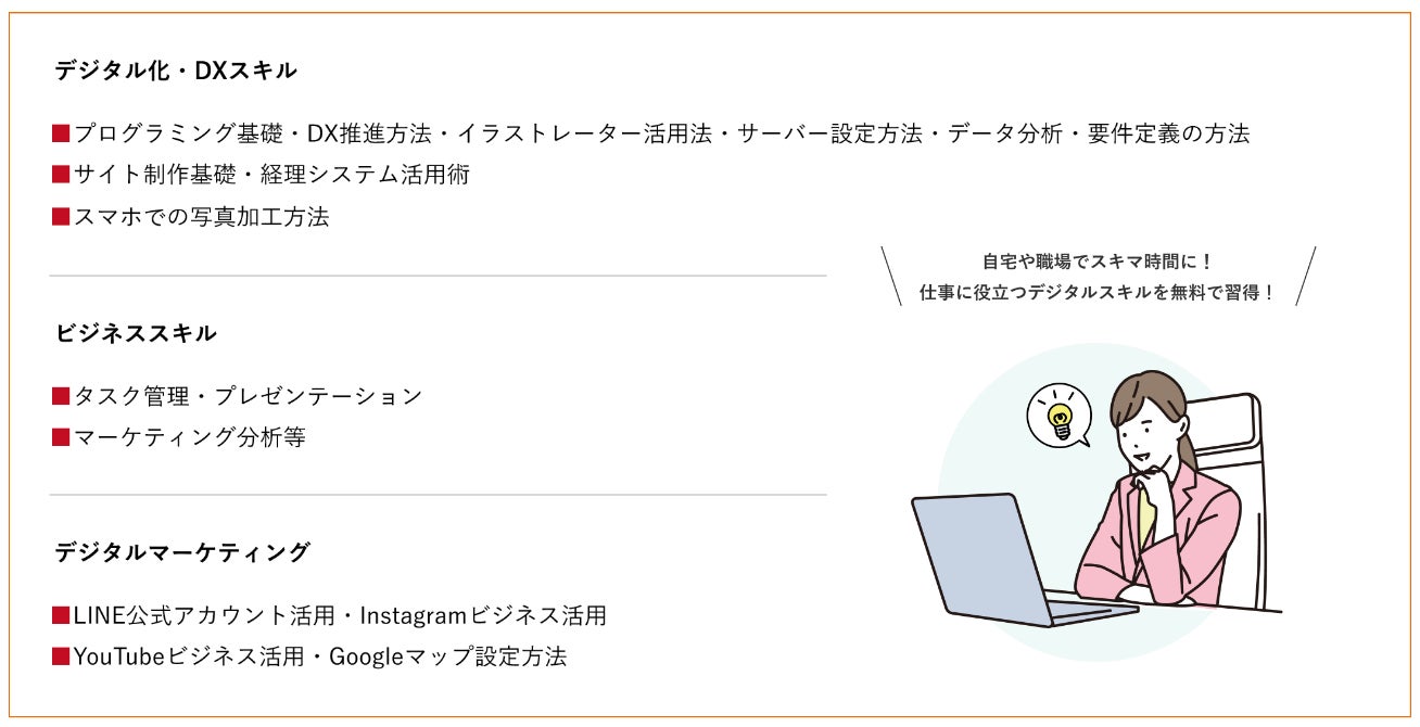 60種類以上のデジタル講座を、24時間いつでも視聴できるオンデマンド学習プログラムです。