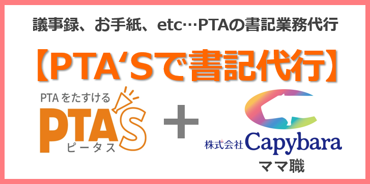 そこで、有能なママに在宅ワークを斡旋する株式会社Capybaraのママ職®にご協力いただき、PTA書記業務の代行サービス【PTA'Sで書記代行】をリリースいたしました。