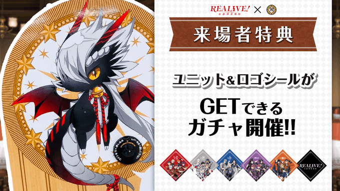 REALIVE!~帝都神楽舞隊~×秋葉原和堂コラボカフェご利用のお客様に、来場者特典としてユニットシール・ロゴシールが入ったチイのガチャをご用意しました。