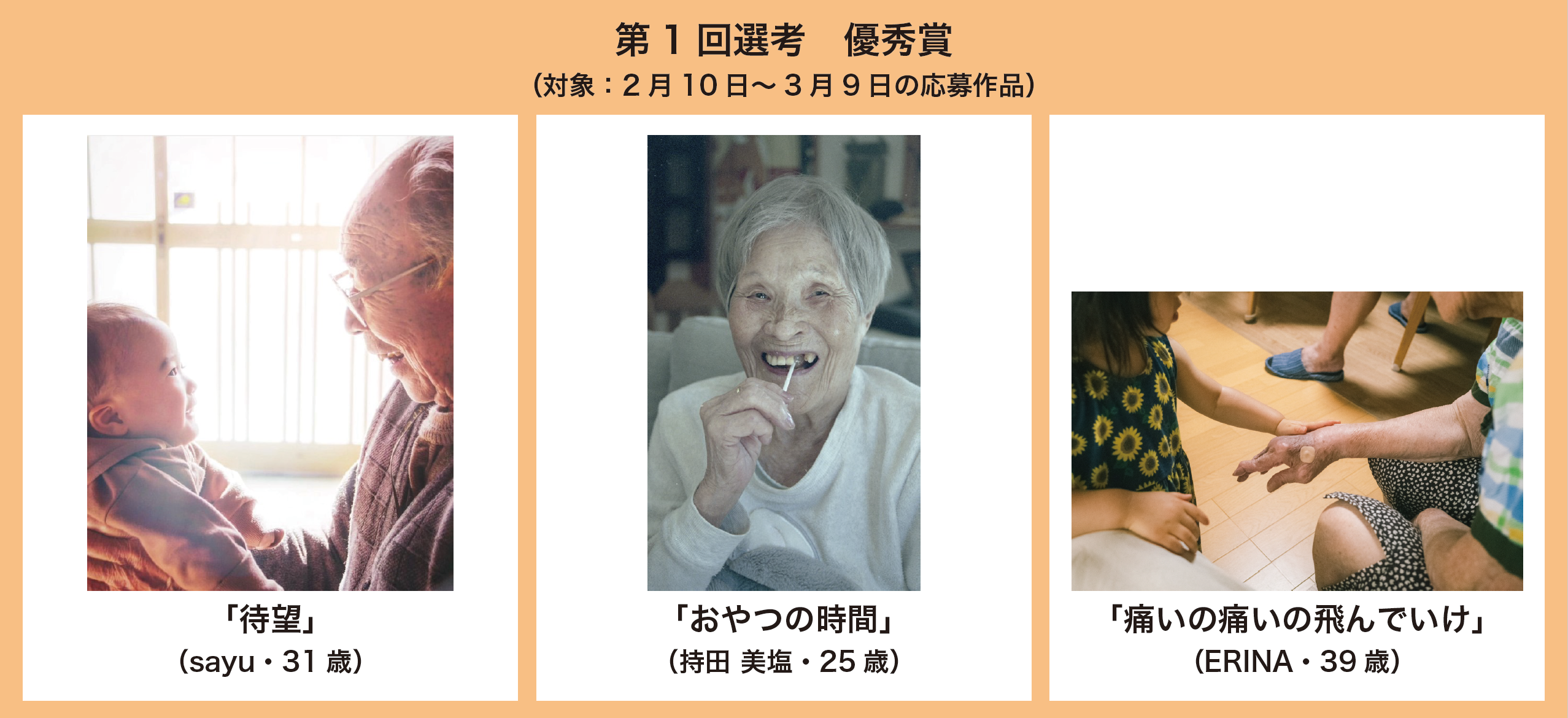 グッドタイムリビング株式会社(本社:東京都中央区 社長:岡口 雅信)は、2023年2月10日より、第1回「老後の日」フォトコンテストを開催しています。この度、第1回選考として、2月10日~3月9日の応募作品239点の中から「優秀賞」3作品を決定しましたので、お知らせします。