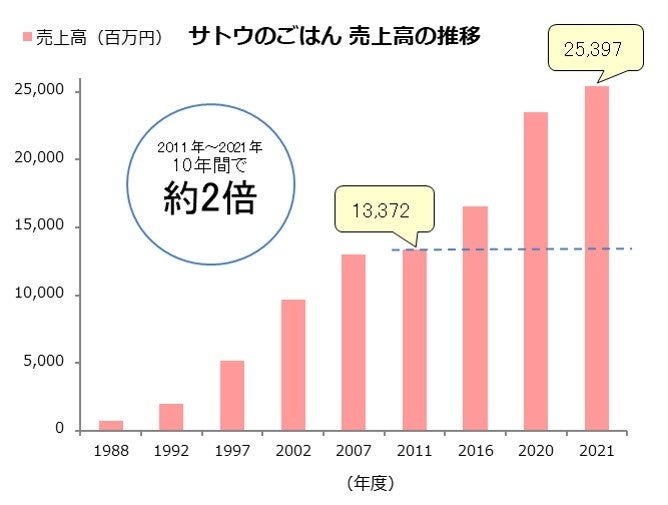 当社におけるパックごはんの売上高も、この10年間で約2倍にまで伸長し、当年度の第1四半期の売上高についても前年同期比14.0%増と右肩上がりで成長を続けております。
