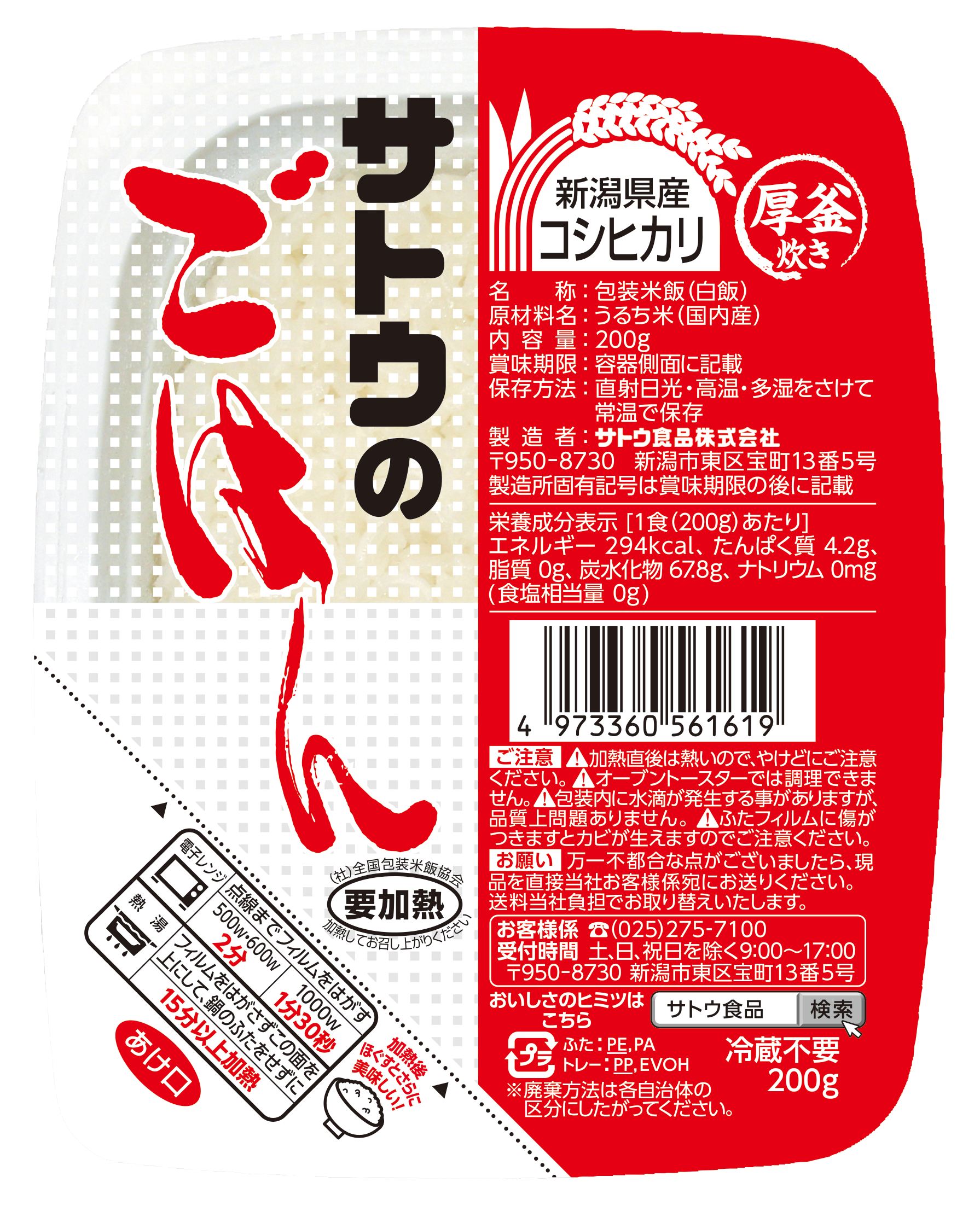 当社は、1988 年に世界ではじめて無菌化包装米飯「サトウのごはん」を世に送り出して以来、「ご家庭で炊いたごはんと変わらぬ美味しさ」をコンセプトとして生産の拡大と品質の追求に努めてまいり、これまでに多くのお客様から高い評価をいただいております。