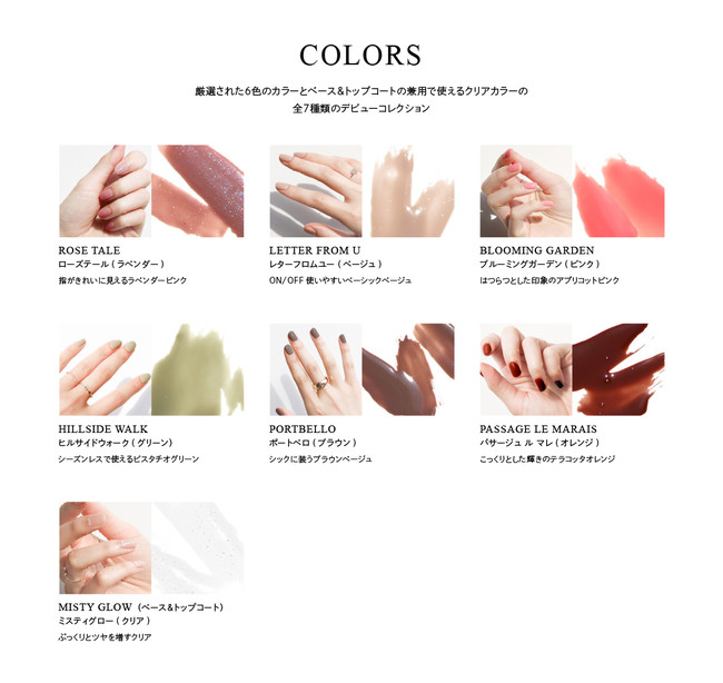 ■厳選された6色のカラーとベース&トップコート兼用で使えるクリアカラーの全7種類のデビューコレクション