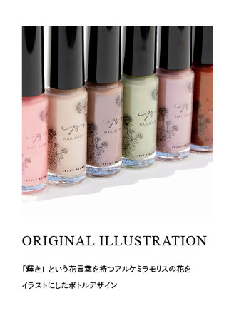 ■「輝き」という花言葉を持つアルケミラモリスの花をイラストにしたボトルデザインと細長い持ち手で操作しやすい塗り心地