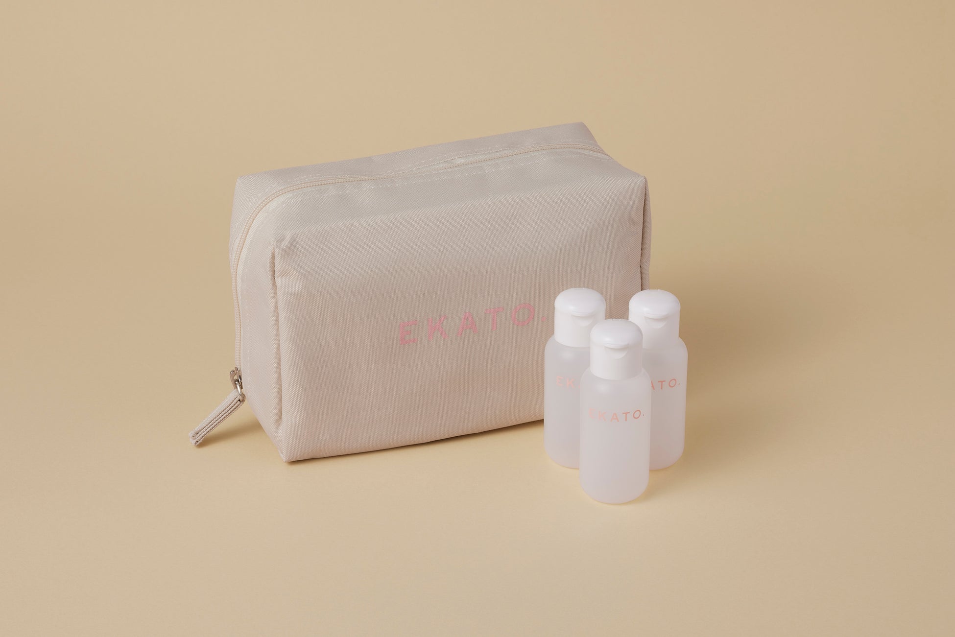 なお、期間中EKATO公式ECサイトにてお買い物をされたお客様には、感謝の気持ちを込めてEKATOオリジナルマスク※をプレゼント。さらに、15,000円(税込)以上お買い上げいただいたお客様には、EKATOオリジナルポーチ+トラベルセット※が贈られます。ぜひこの機会にEKATOでのお買い物をお楽しみください。※ノベルティは、なくなり次第終了となりますのでご了承ください。