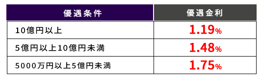 概要:一定額の入金・入庫で制度信用買方金利を最良1.19%に優遇するプログラム