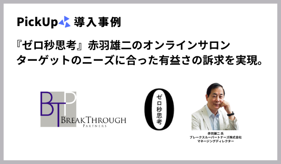 『ゼロ秒思考』著者 赤羽雄二氏の運営するオンラインサロンで「PickUp」の導入が決定〜ターゲットに最適化したサービス説明を LINE で実現〜