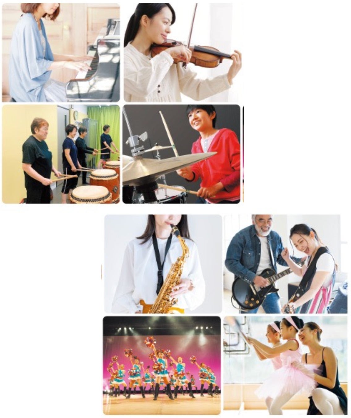 お子様も、大人の方も、誰もが楽しめる多彩なレッスンを。 楽器や歌のコースの他、バレエ・ダンス教室も開講しています。