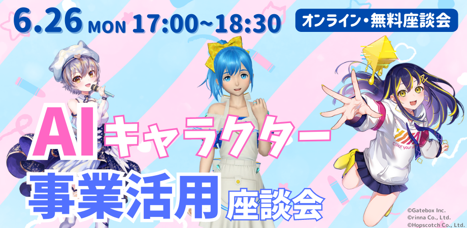 AIキャラクターの事業活用を事例を元に模索するオンライン座談会 with Gatebox / rinna / ホップスコッチ 6/26(月)17:00〜18:30