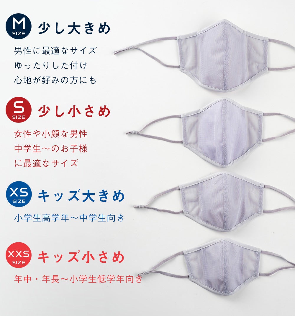 幼児から小学生、中学生、高校生まで対応するキッズサイズが新たにラインナップに加わりました。暑い夏の外遊び、体育、部活でも快適にマスク着用することが可能です。アウトドアやキャンプ、釣りなど行楽シーズンにもおすすめです。