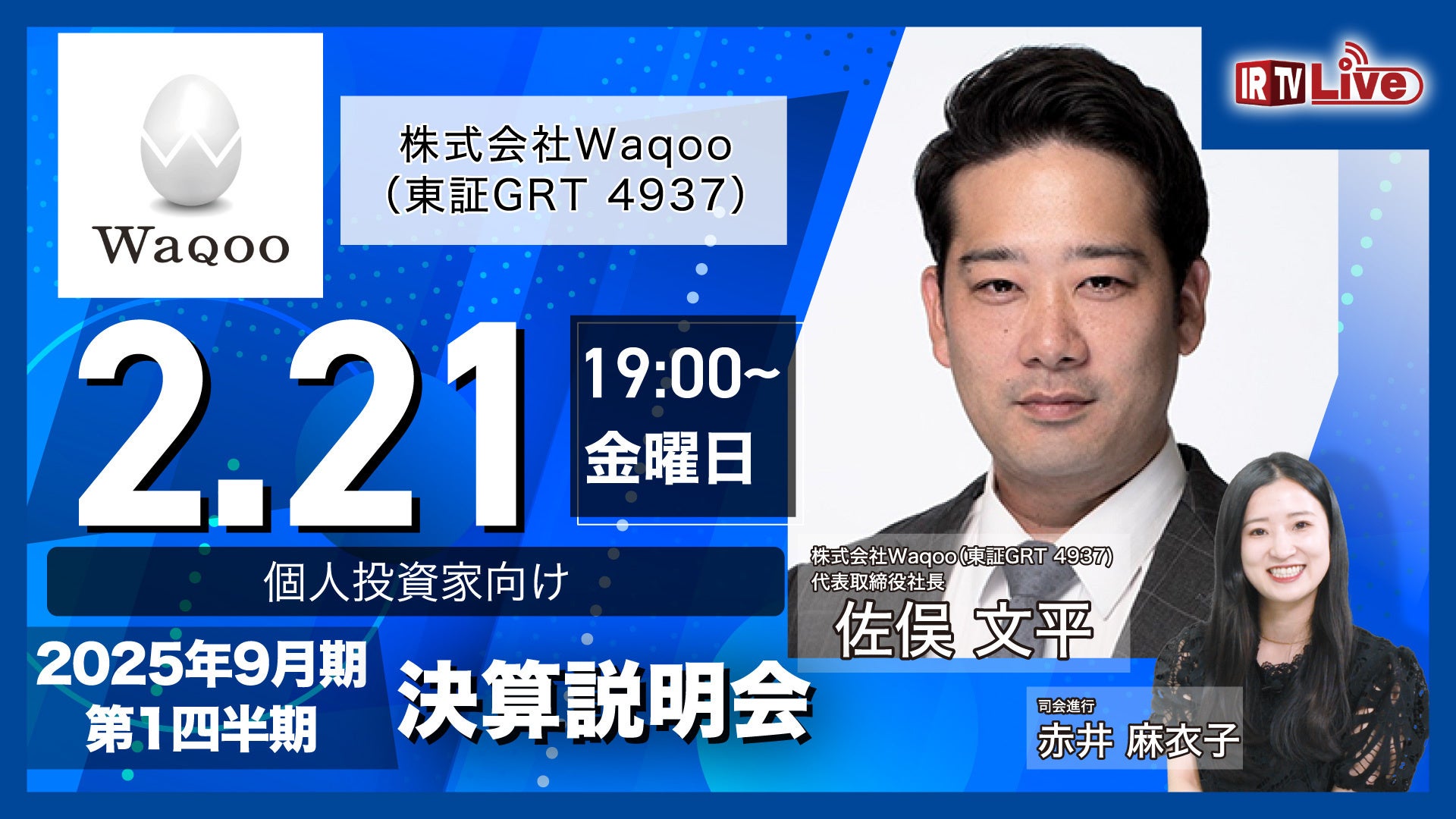 株式会社Waqoo 代表取締役社長 佐俣文平が、2025年2月21日(金)に株式会社IR Roboticsが運営する、投資家と企業をつなぐ動画メディア「IRTV」に出演いたしました。