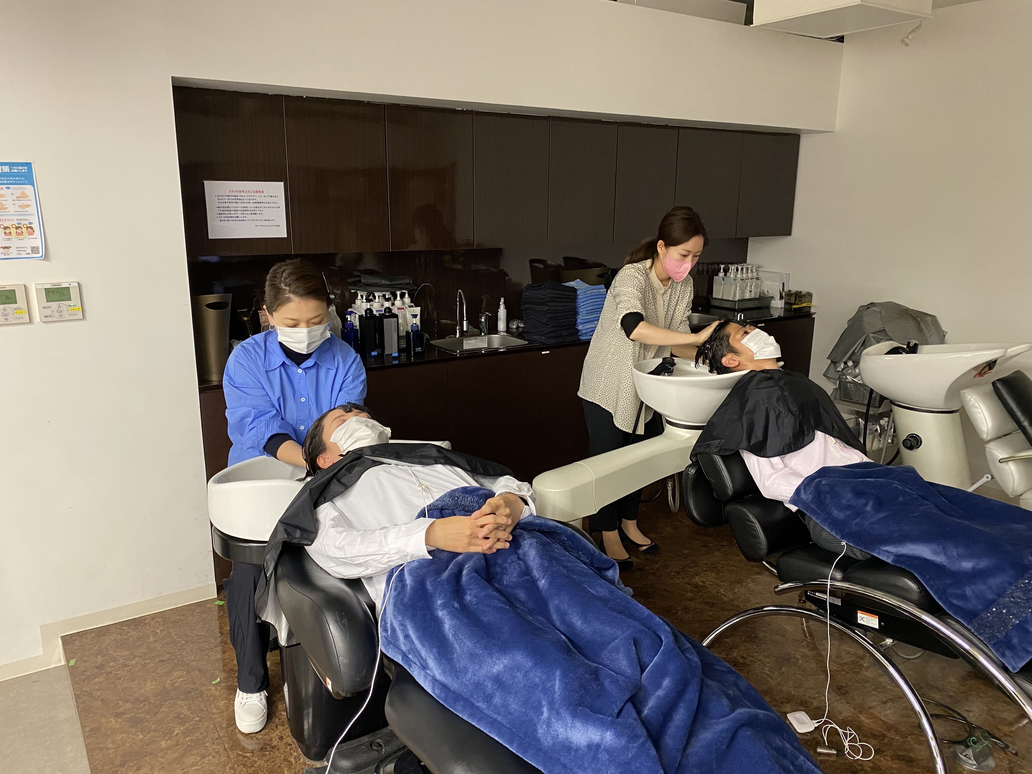 3.シャンプーは約10分、2人同時に仰向けで実施しました。