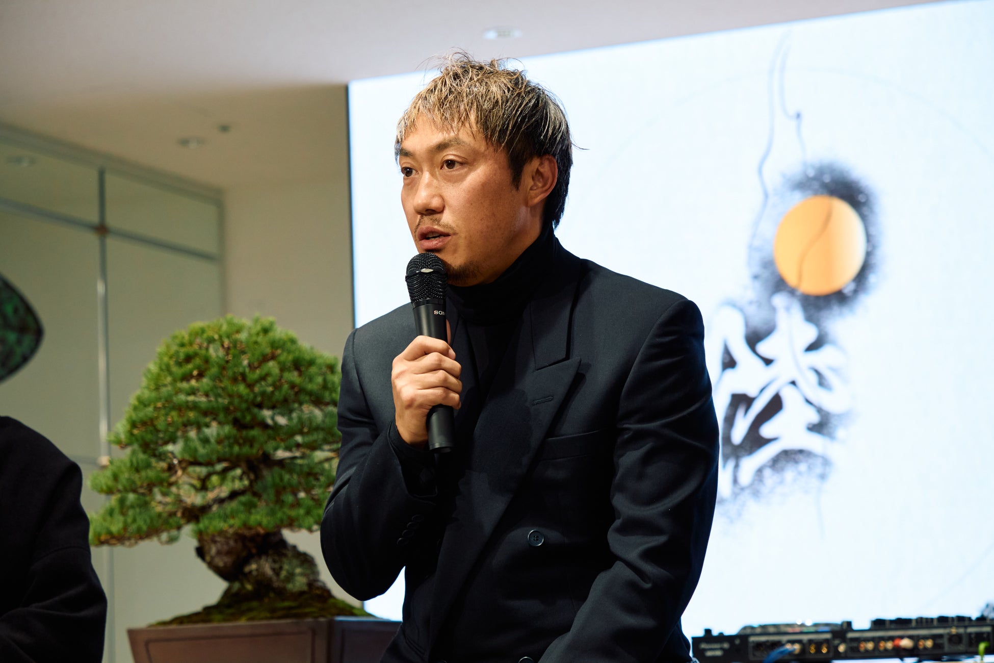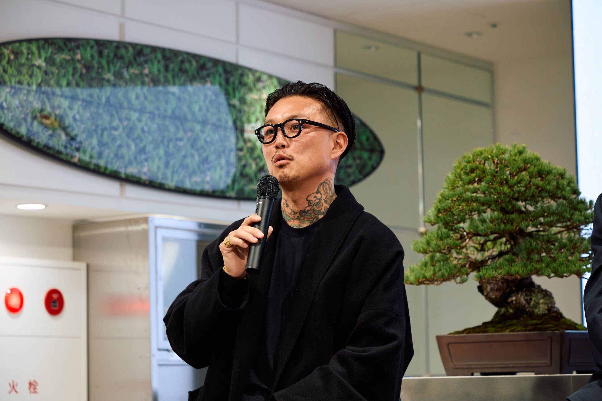 また、「陸(ROKU)/玖(KYU)」を試飲してみて、どんな盆栽のインスピレーションが生まれたかを問われると「先ほどの話を聞きながら思ったのが、陸は女性らしい味わいなので女性松の赤松、玖は上品な気迫がある男性松の黒松に見立てて、作品を作りたいですね。また、ブレンドをすると味が変わるので新たな表現になる“融合の美”も表現してみたいですね。」と語りました。